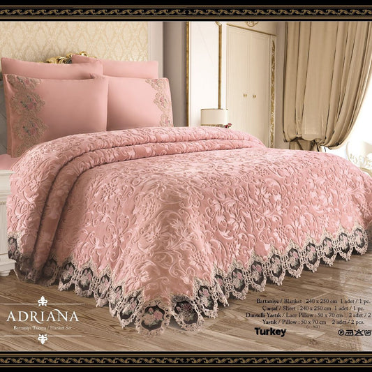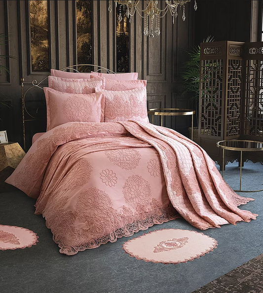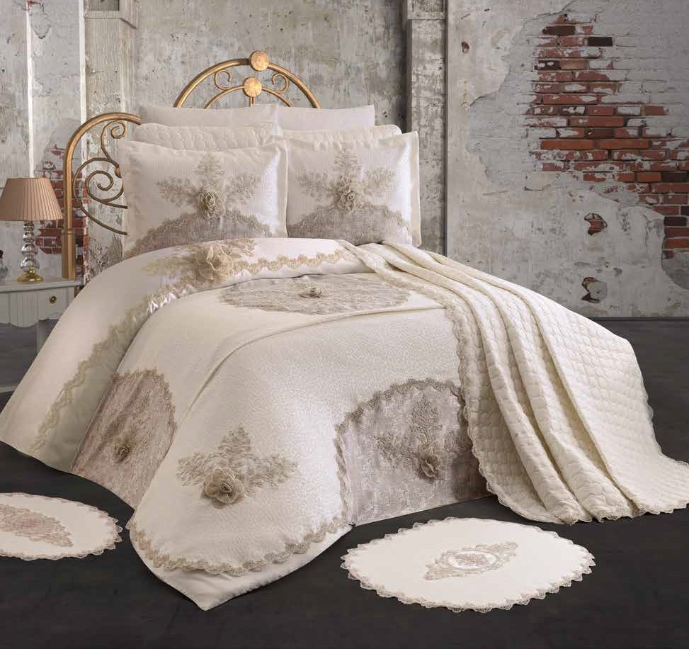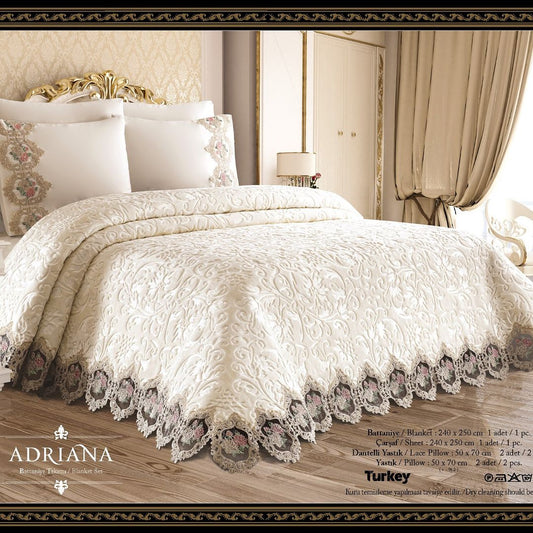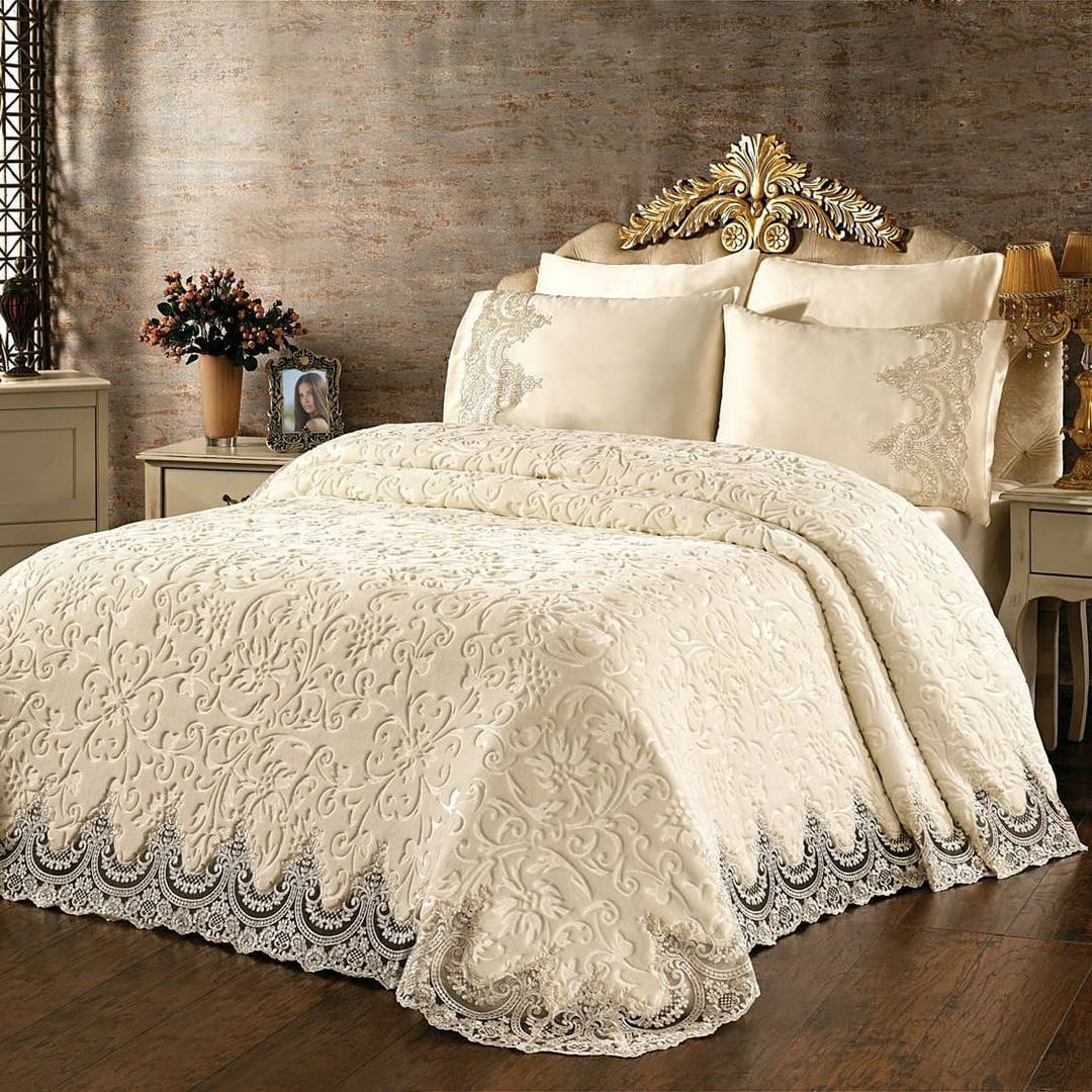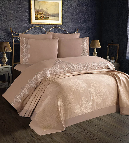 Set Cuvertură de lux Matlasată cu dantelă Elegantă, 6 piese, pat 2 persoane, CL103