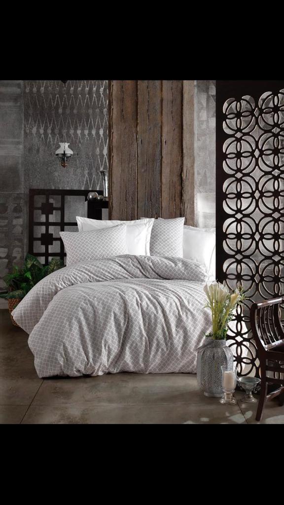 Lenjeria de pat este fabricata din 100% bumbac natural .Aceasta este tratata antisifonare, are tesatura densa ranforce. Este placuta la atingere si are un design modern. Ambalaj elegant in cutie, ideala pentru a fi daruita