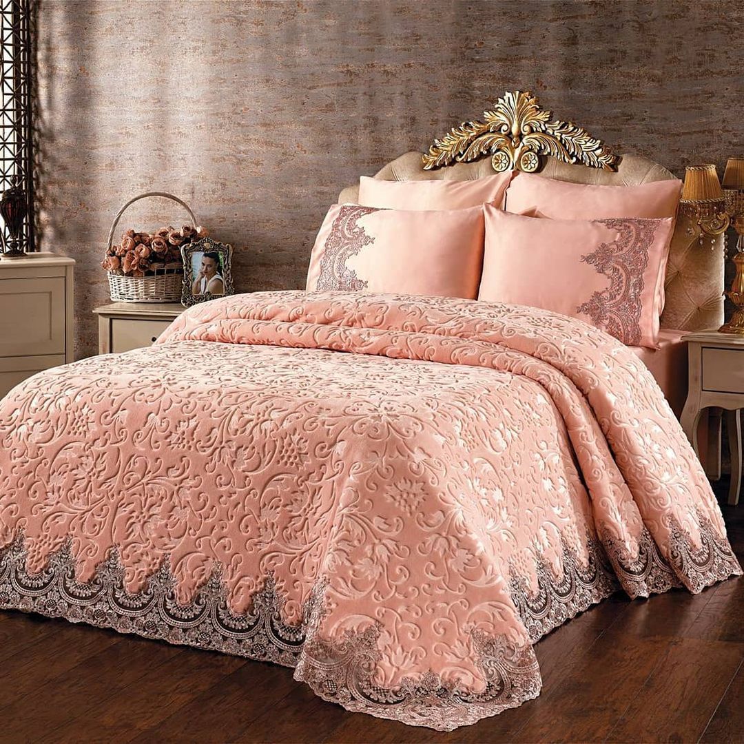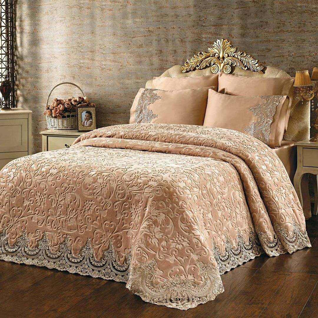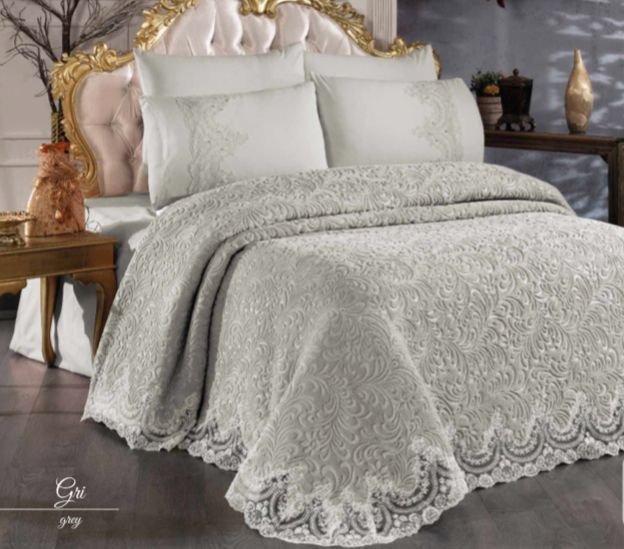 Set Cuvertură de lux Matlasată cu dantelă Elegantă, 6 piese, pat 2 persoane, CL103